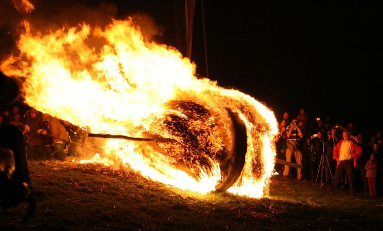 Brennendes Rad beim Start auf dem Lügder Osterberg