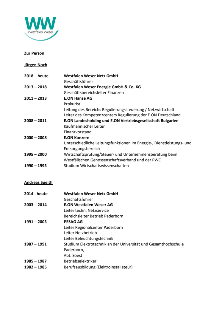 Angaben zu den beruflichen Werdegängen der Geschäftsführer Jürgen Noch (WWE) und Andreas Speith (WWN)