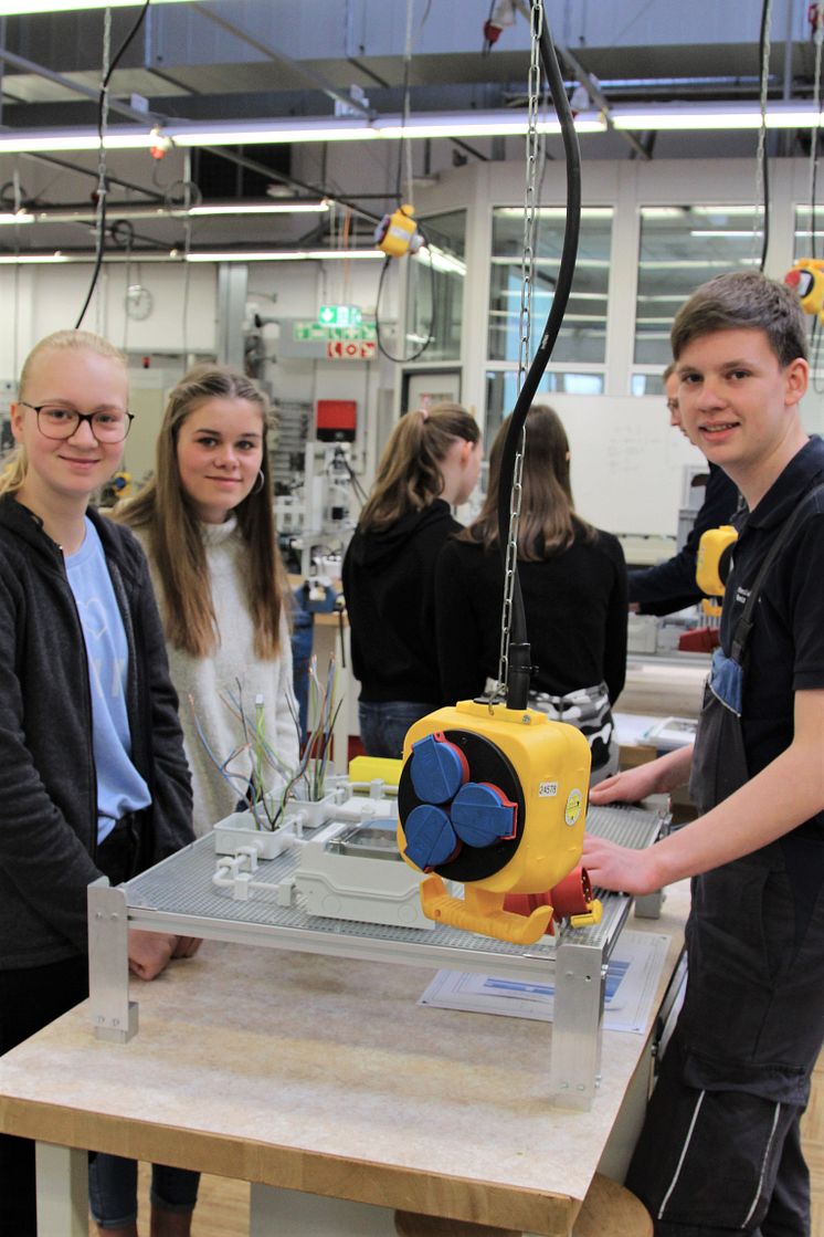 (v. l.): Maike Prior, Realschule St. Michael Paderborn, Pia Stelzer, Reismann Gymnasium, und Lars Halsband, 2. Lehrjahr, Westfalen Weser Netz.