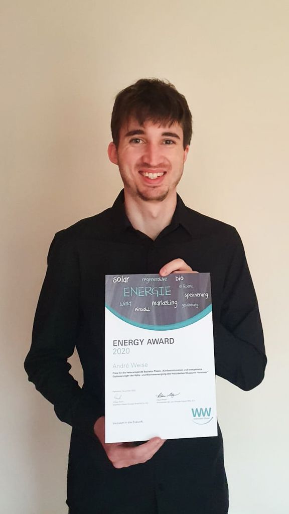 André Weise ist für seine Bachelorarbeit an der Hochschule für angewandte Wissenschaften und Kunst in Holzminden jetzt in einer Online-Würdigung mit allen Beteiligten von Westfalen Weser mit dem Energy Award 2020 ausgezeichnet worden. Er erhält ein Preisgeld von 1000 Euro, insgesamt wurden 8000 Euro an Preisgeldern vergeben. Bereits zum 20. Mal zeichnet der kommunale Infrastrukturdienstleister damit den wissenschaftlichen Nachwuchs in Ostwestfalen - Lippe und dem Weserbergland aus.