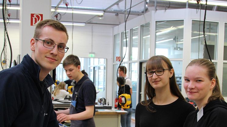 Foto Girlsday_0660_1(v. l.): Maike Prior, Realschule St. Michael Paderborn, Pia Stelzer, Reismann Gymnasium, und Lars Halsband, 2. Lehrjahr, Westfalen Weser Netz.