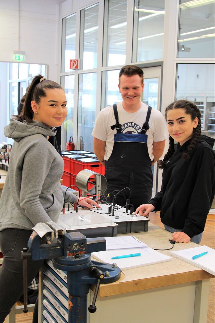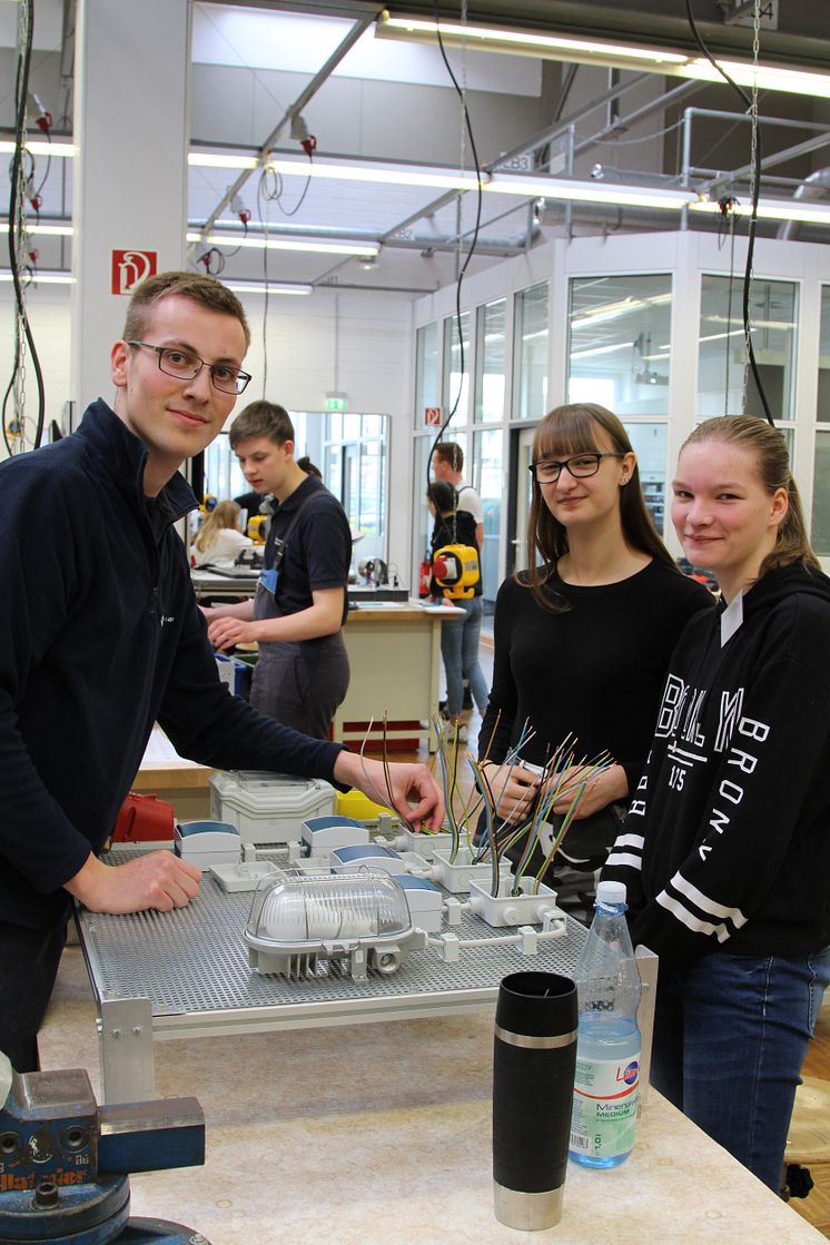 Foto Girlsday_0665_2 (v. l.): Mabel Buchholz, Gesamtschule Bad Lippspringe, Lars Jachenhholz, 2. Lehrjahr Westfalen Weser Netz, und Izla Islo, Gesamtschule Bad Lippspringe.