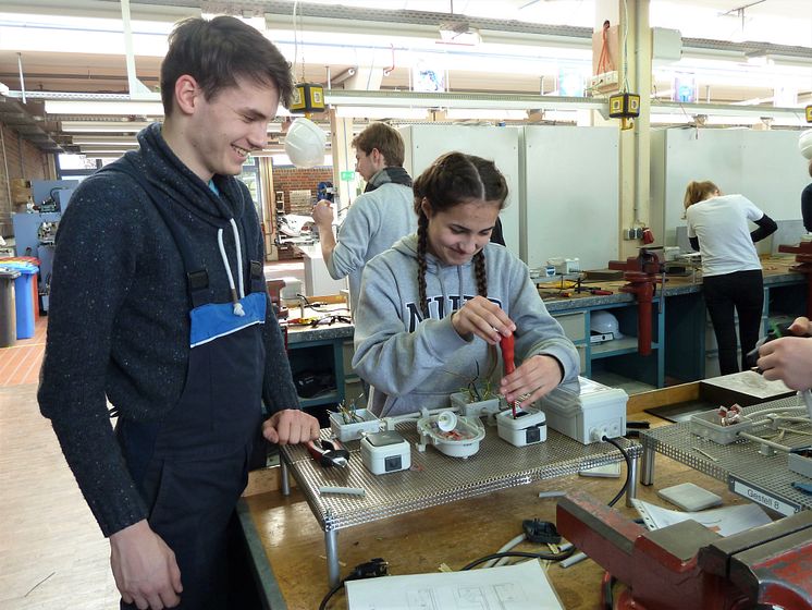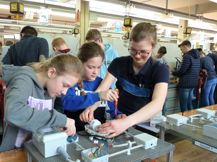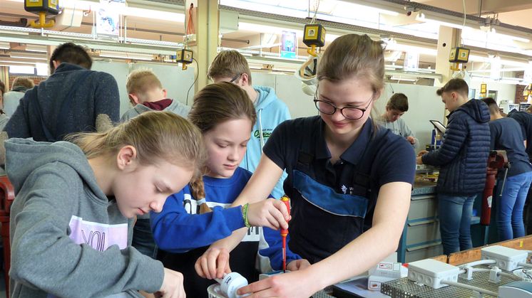 Beeindruckt zeigten sich die Schülerinnen beim Girls‘ Day von den praktischen Aufgaben. Sabine Plett, aus der siebten Klasse der Erich-Kästner-Gesamtschule Kirchlengern: „Es ist spannend, da ich etwas Neues ausprobieren kann und es kein typischer Frauenberuf ist." Für Stella Hausauer, Jahrgang 7, Freiherrr vom Stein Gymnasium Bünde, stand das Prakstische im Vordergund. "Es hat Spaß gemacht, etwas zu bauen und zu experimentieren.“ Daniel Westermann, technischer Ausbilder in Kirchlengern, freut sich über das Engagement der Mädchen in der Ausbildungswerkstatt: „Viele junge Mädchen haben großes Interesse an technischen Zusammenhängen. Das ist eine gute Voraussetzung, um später in der Ausbildung Theorie und Praxis miteinander zu verknüpfen.“