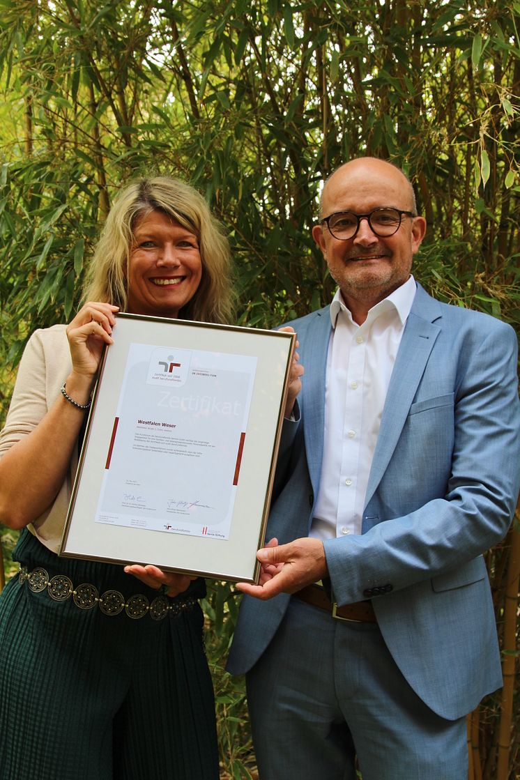 Westfalen Weser hat sich das Zertifikat mit Prädikat zum audit berufundfamilie gesichert. Es gilt als Qualitätssiegel und steht für die besondere Anerkennung einer strategisch angelegten, nachhaltigen und familienbewussten Vereinbarkeitspolitik. Und dies bereits seit 2008. „Wir setzen schon lange auf eine nachhaltige familien- und lebensphasenbewusste Personalpolitik. In enger Zusammenarbeit mit dem Betriebsrat haben wir uns als Unternehmen schon sehr früh auf den immer größer werdenden Stellenwert, den die Vereinbarkeit von Beruf und Familie in der Gesellschaft einnimmt, eingestellt. Und wir haben das Thema ständig weiterentwickelt, um es aktuellen Erfordernissen anzupassen. Für junge Leute zählt heute auch die Zeit, die sie mit Familie und Hobby oder im Verein verbringen können. Wir freuen uns, dass unser anhaltendes Engagement jetzt erneut anerkannt und bestätigt wurde“, erläutert Westfalen Weser-Geschäftsführer Andreas Speith.