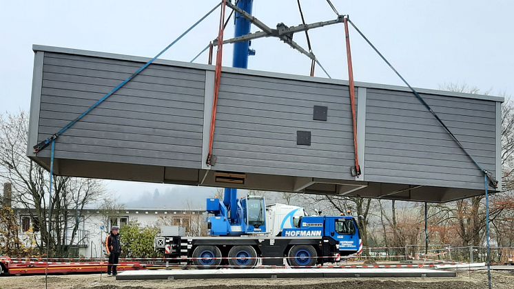 Ein wesentliches Element der Wärmeversorgung für das Beverunger Neubaugebiet „Am Dreckwege“ ist angekommen. Die Gebäudehülle für die Energiezentrale ist auf ihrem Standort positioniert worden. Das Wohngebiet soll von Energieservice Westfalen Weser (ESW) mit umweltschonender Nahwärme versorgt werden. Auf dem 3ha großen Baugebiet werden über 40 Einfamilienhäuser entstehen.