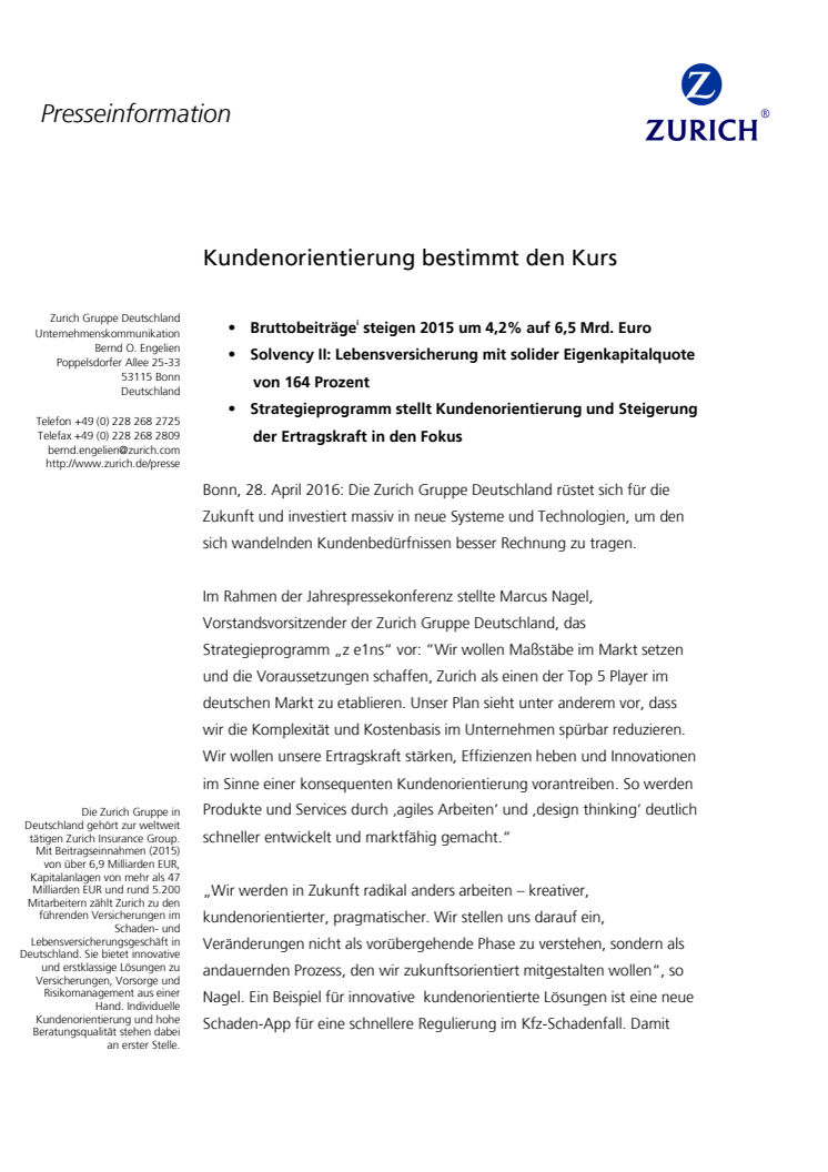 Die Zurich Gruppe Deutschland rüstet sich für die Zukunft und investiert massiv in neue Systeme und Technologien, um den sich wandelnden Kundenbedürfnissen besser Rechnung zu tragen.