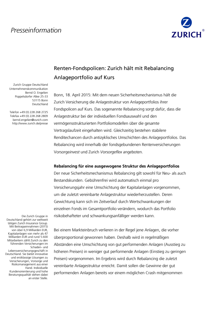 Renten-Fondspolicen: Zurich hält mit Rebalancing Anlageportfolio auf Kurs