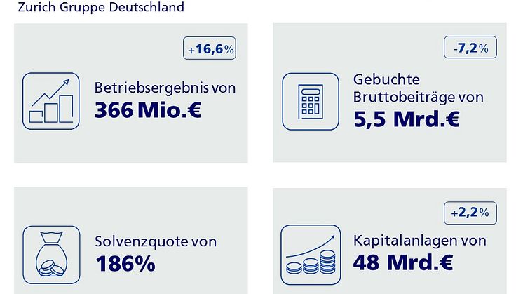 Die Zurich Gruppe in Deutschland gehört zur weltweit tätigen Zurich Insurance Group. Mit Beitragseinnahmen (2017) von über 5,5 Milliarden EUR, Kapitalanlagen von mehr als 48 Milliarden EUR und rund 4.900 Mitarbeitern zählt Zurich zu den führenden Versicherungen im Schaden- und Lebensversicherungsgeschäft in Deutschland. Sie bietet innovative und erstklassige Lösungen zu Versicherungen, Vorsorge und Risikomanagement aus einer Hand. Individuelle Kundenorientierung und hohe Beratungsqualität stehen dabei an erster Stelle.