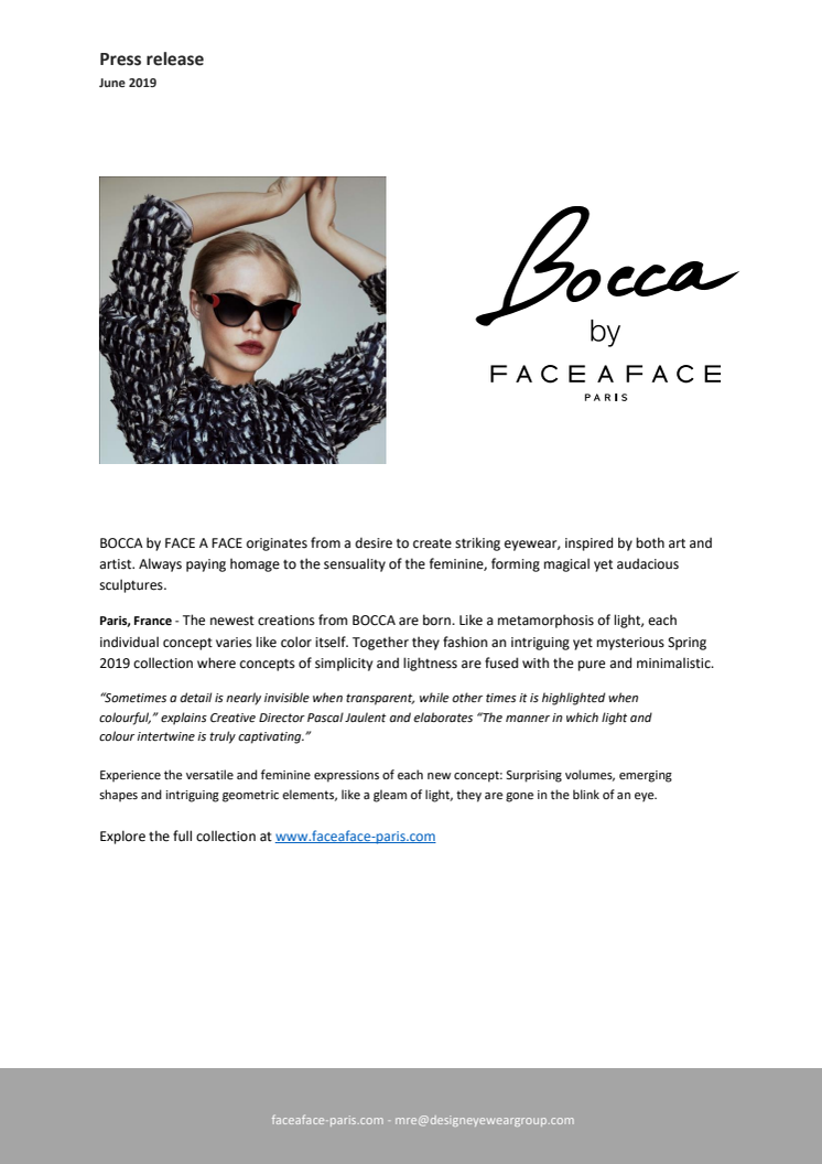 The newest creations from BOCCA are born. Like a metamorphosis of light, each individual concept varies like color itself. Together they fashion an intriguing yet mysterious 2019 collection where concepts of simplicity and lightness are fused with the pure and minimalistic.