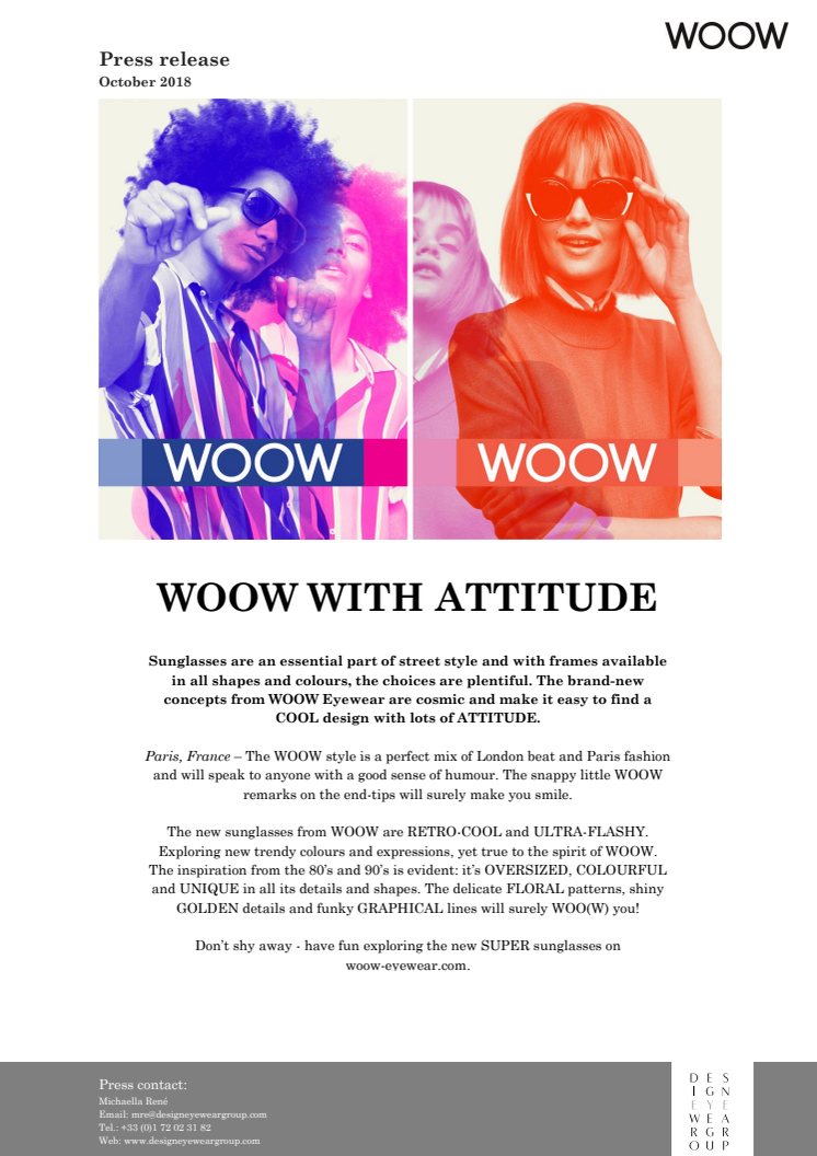 Sunglasses are an essential part of street style and with frames available in all shapes and colours, the choices are plentiful. The brand-new concepts from WOOW Eyewear are cosmic and make it easy to find a COOL design with lots of ATTITUDE.