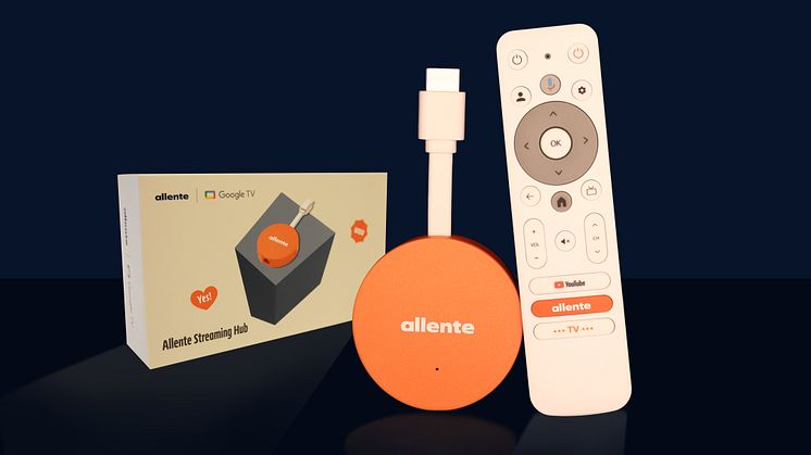 Den nordiske TV-distributør Allente lancerer nu Allente Streaming Hub – en Google TV-streaming-dongle med Chromecast built-in™ og Bluetooth. Allentes TV-app er allerede installeret på enheden sammen med de fleste andre streamingtjenesters. Brugeren får adgang til både traditionelle flow-kanaler og streamingtjenester via Allente Streaming Hub, som leveres med en fjernbetjening, der gør det nemt at bladre mellem kanalerne og få adgang til andet streamingindhold. Da fjernbetjeningen også er stemmestyret, kan brugeren ’tale med Google’ for at finde film, streame apps, afspille musik, styre TV-apparatet og meget mere – alt sammen med stemmen.