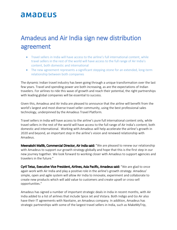 Rejseudbydere i Indien får adgang til hele flyselskabets internationale indhold, mens rejseudbydere i resten af verden vil få adgang til hele Air Indias indhold, både indenrigs og udenrigs.