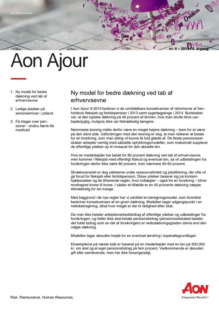 Aon Ajour 4-2015: Ny model for bedre dækning ved tab af erhvervsevne