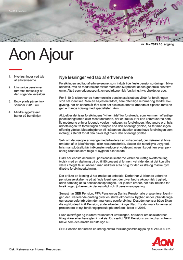 Aon Ajour 6-2015: Nye løsninger ved tab af erhvervsevne