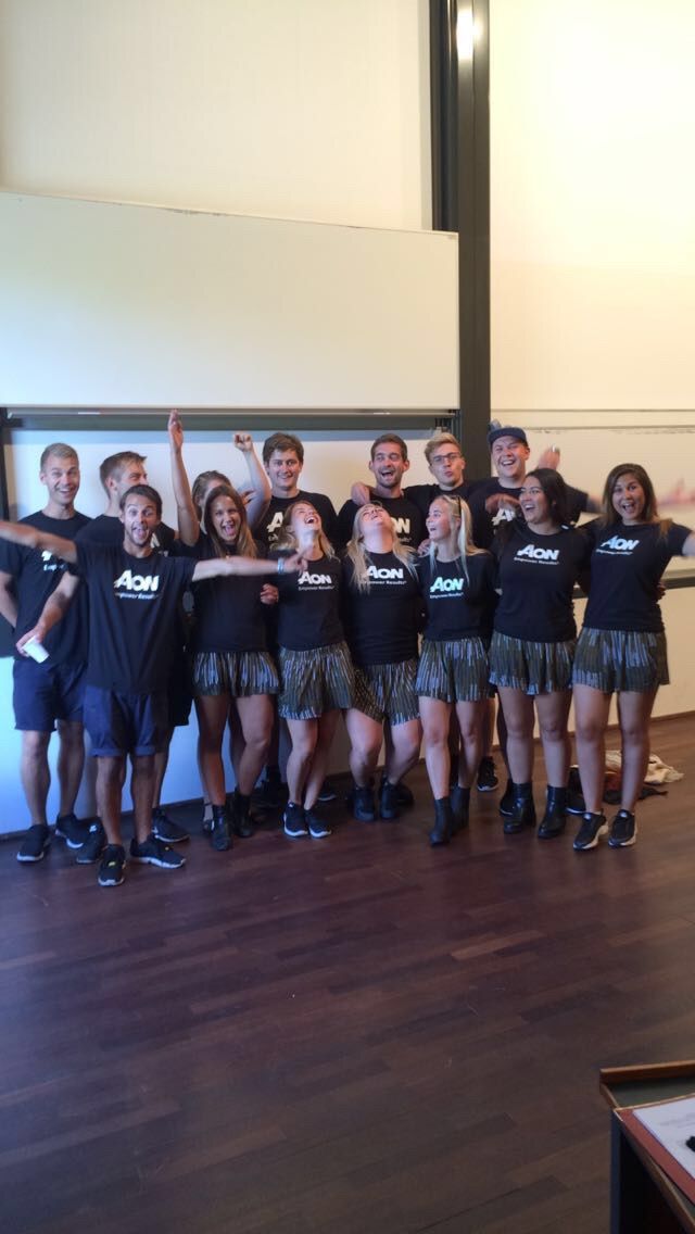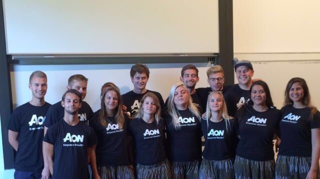 I den forbindelse sponserede Aon t-shirts til vejlederteamet på erhvervsjura/erhvervsøkonomi, så de blev fint klædt på i dagens anledning.