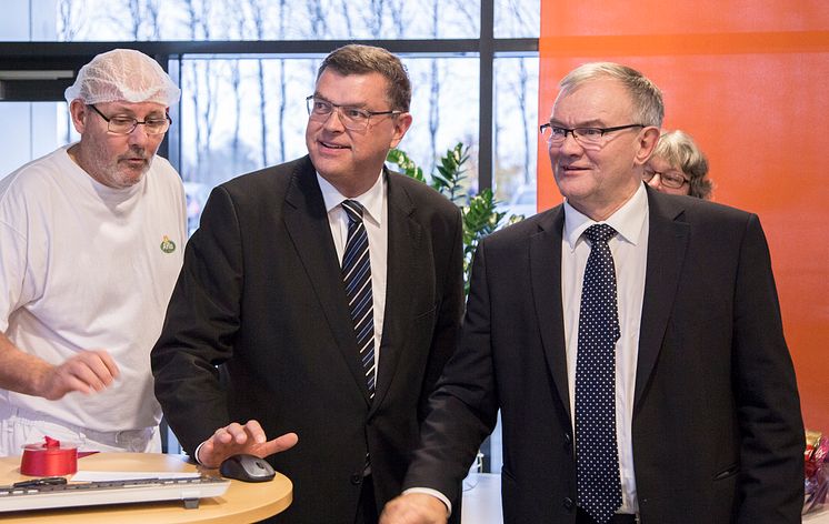 Handels- og udviklingsminister Mogens Jensen med Arlas bestyrelsesformand Åke Hantoft (højre).