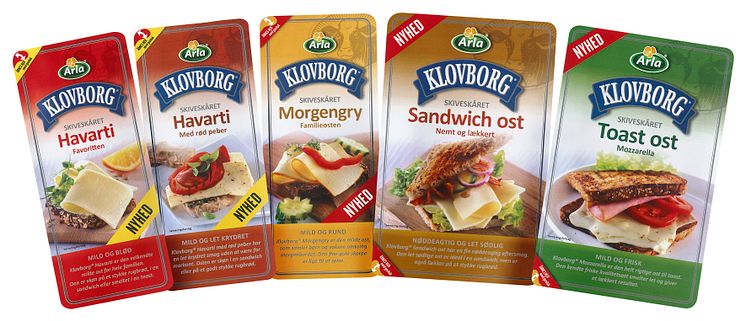 Skiveskåret Arla Klovborg® Sandwich ost, er smagsmæssigt i familie med den hollandske Maasdammer og den schwiziske Emmentaler.