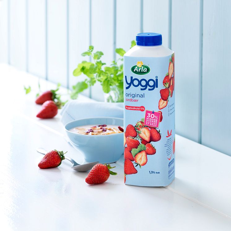 Den nye Arla Yoggi jordbær med 30% mindre sukker