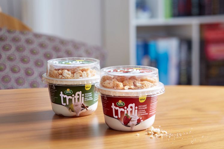 Den nye dessertyoghurt Arla Trifli kommer i to varianter