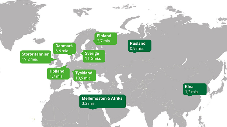 Et geografisk overblik over Arlas omsætning på kerne- og vækstmarkederne i 2013