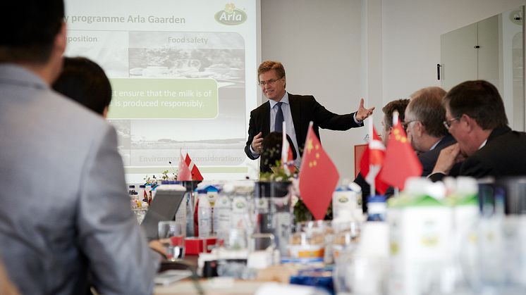 Peder Tuborgh, CEO Arla Foods, byder kinesisk delegation velkommen hos Arla