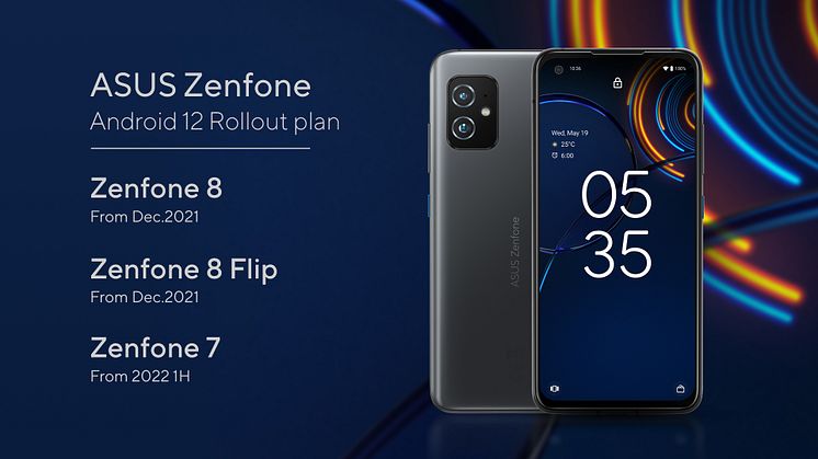 Copenhagen, Denmark, October 22, 2021 — ASUS today announced that the latest Android 12 upgrade will be available for the Zenfone 8 series commencing in December, 2021. This will be followed by upgrades for the ROG Phone 5 and 5s series in the first quarter of 2022. The upgrades for the Zenfone 7 series and ROG Phone 3 series are expected during the first half of 2022.