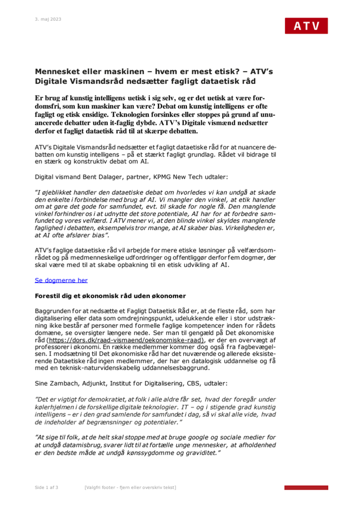 Pressemeddelelse for ATV's faglige dataetiske råd - PDF