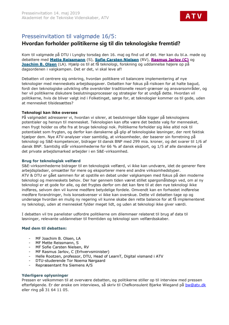 Presseinvitation til valgmøde 16/5: Hvordan forholder politikerne sig til din teknologiske fremtid?