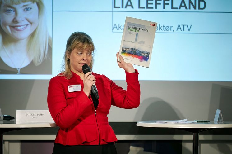 ATV's direktør Lia Leffland med rapporten Mulighedernes Indien. Teknologisk Topmøde 2019.