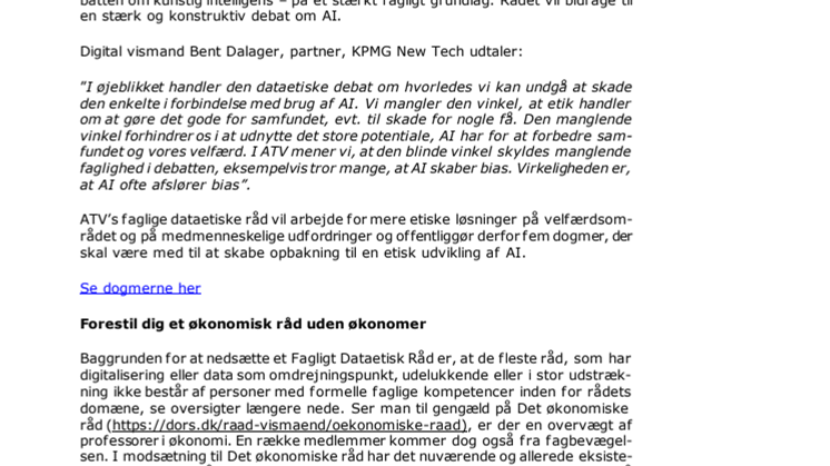 • Mennesket eller maskinen – hvem er mest etisk? – ATV’s Digitale Vismandsråd nedsætter fagligt dataetisk råd - PDF