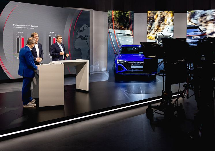 Fra venstre: Dirk Arnold, Head of Audi Communications, Markus Duesmann, CEO, and Jürgen Rittersberger, CFO