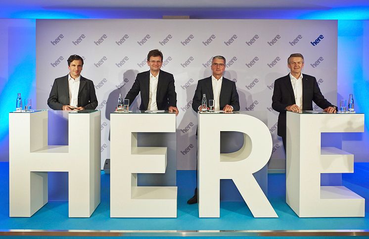 Sean Fernbeck, President HERE; Klaus Fröhlich, BMW AG; Rupert Stadler, AUDI AG; Thomas Weber, Daimler AG