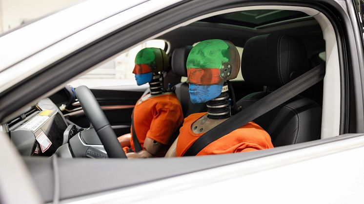 To crash-test dummies er klar til kollisionstest i Audi Vehicle Safety Center