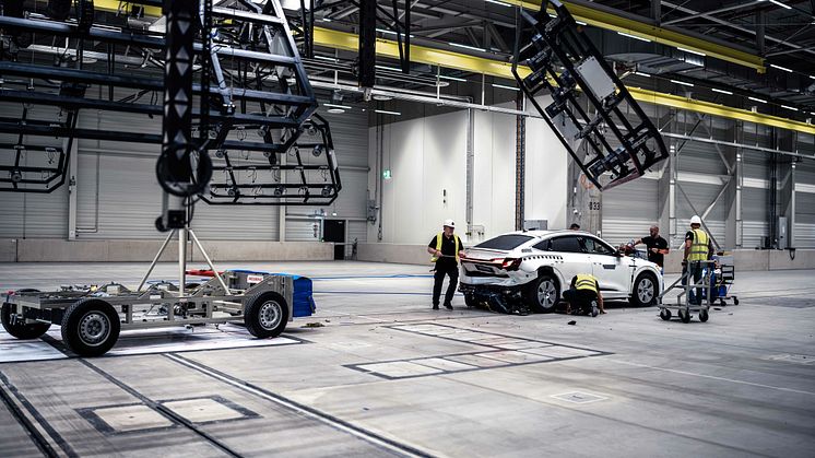 Forberedelser til en kollisionstest i Audi Vehicle Safety Center