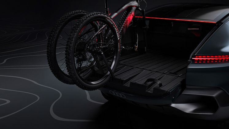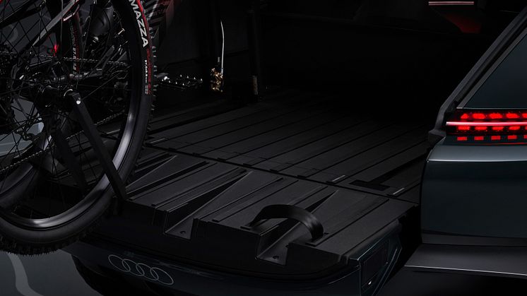 Den transparente bagrude kan skubbes næsten helt flugtende hen over taget på Audi activesphere. Samtidig klappes bagendens nederste, lodrette element ned i vandret, hvorved der åbner sig et anvendeligt lad, som allerede har integreret holder til eksempelvis cykler – active back. Sidefladerne på bagenden – C-stolperne – forbliver uforandret i deres position og bibeholder dermed activespheres dynamiske silhuet. En skillevæg bag bagsæderne kører op og beskytter kabinen mod vind og vejr.