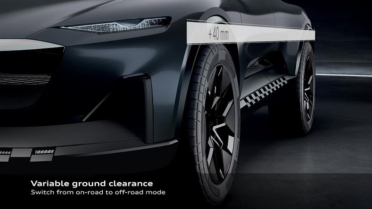 Det udvendige design signalerer terrænegenskaber og synliggør med de enorme hjulkasser, at bilen er udstyret med det variable, elektronisk regulerede firehjulstræk quattro. Frihøjden på Audi activesphere er også variabel og kan hæves med 40 mm fra basishøjden på 208 mm – perfekt til terrænkørsel – eller sænkes med 40 mm til kørsel på vejen.