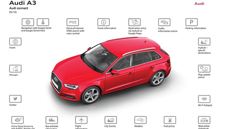 Kunderne kan også købe ekstra datapakker til WiFi-hotspot uafhængigt af de integrerede Audi connect-tjenester. Dette er en del af de valgfrie navigationssystemer. Det giver alle passagerer mulighed for at surfe på nettet til attraktive priser fra op mod otte mobil-enheder. Vælger man en europæisk datapakke, fungerer data-overførslen også automatisk til fastlåste priser, når man krydser en international grænse – og altså også når der skiftes internet-udbyder.