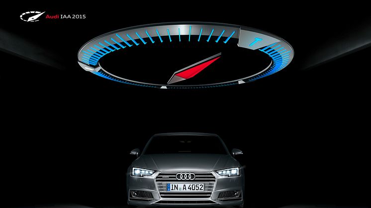 På dette års internationale biludstilling (IAA) i Frankfurt præsenterer Audi igen en spektakulær messeopsætning. I stedet for en klassisk messestand indbyder et multimedialt oplevelsesrum de besøgende til at opleve Audis fire fokusemner med alle sanser: Audi Sport, quattro, Audi Technologies og Audi ultra. Til det formål opfører koncernen en midlertidig bygning på messeområdet i Frankfurt. Det centrale element i den arkitektoniske dramaturgi udgøres af mærkets mest solgte model: den nyeste generation af Audi A4.
