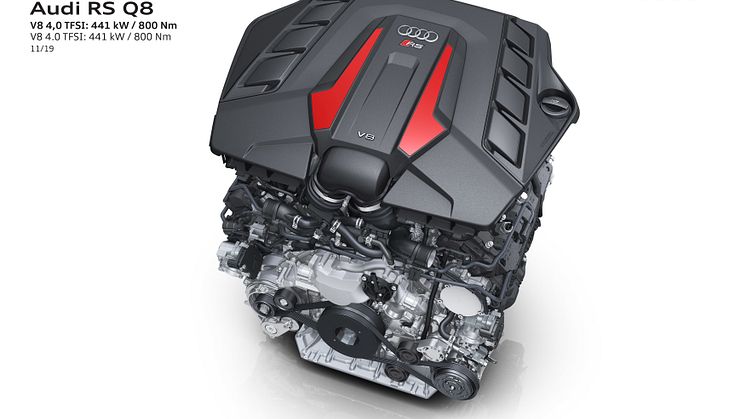 Audi Sport GmbH havde verdenspremiere på den nye RS Q8 på Los Angeles Auto Show, der åbnede den 22. november. Den øverste model i Q-produktlinien bliver her vist for første gang i en RS-version og kombinerer kræfterne fra en RS-model med elegancen fra en coupé og fleksibiliteten fra en SUV. Hjertet i Audi RS Q8 er en otte-cylindret biturbo-motor med 600 hk og 800 Nm.