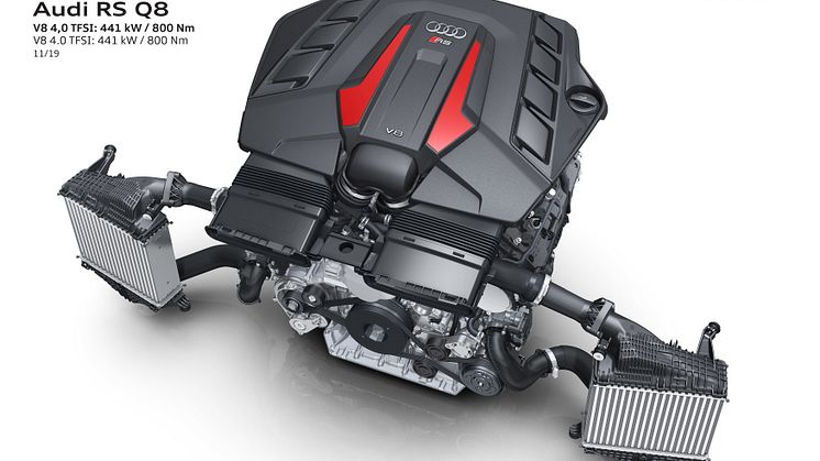 ”For første gang i vores 25-årige historie med Audi RS-modeller introducerer vi en stor SUV-coupe med gener fra en ægte high-performance sportsvogn,” siger Oliver Hoffmann, CEO for Audi Sport GmbH. "Med sin biturbo V8-benzinmotor er Audi RS Q8 den prestigefyldte spydspids i RS-modelfamilien."