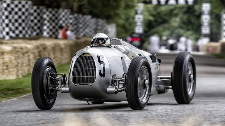 For de mange besøgende på Goodwood er Auto Union Type C en gammel og folkekær kending. Med sine 16 cylindre, 520 hk, tophastighed på 340 km/t og motoren placeret bag føreren, blev denne racerbil betragtet som et futuristisk vidunder, da den først blev præsenteret i 1936. Samme år vandt Bernd Rosemeyer det europæiske mesterskab og det tyske hill-climb mesterskab. I år satte Hans-Joachim Stuck sig bag rattet på Audi Traditions genopbyggede Type C, og det var et specielt øjeblik for den tidligere Audi Sport-kører, hvis far, Hans Stuck, i 1930'erne var en del af Auto Union-teamet og næsten uovervindelig, når det kom til hill-climb race. Hver gang Stuck junior selv kører en Sølvpil, ifører han sig sin fars originale kørehandsker og -briller.