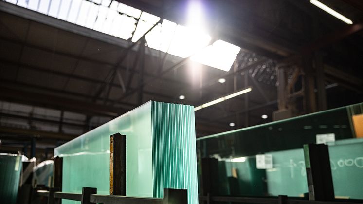 Pladeglasset formes først til firkantede enheder med en størrelse på ca. 3x6 m. Derefter fremstiller søstervirksomheden Saint-Gobain Sekurit bilruderne i den videre proces.