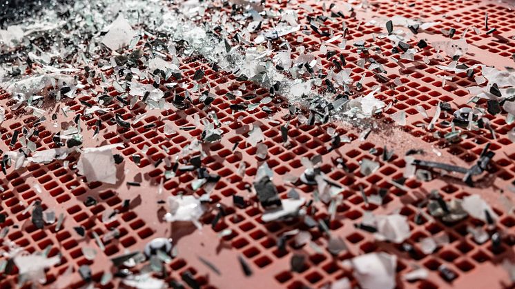 1. trin: Glasset fra bilerne bearbejdes, og materialerne sorteres