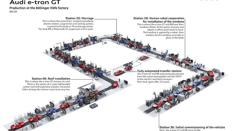 • Joint assembly line for Audi R8 and Audi e-tron GT at the Böllinger Höfe at the Neckarsulm site