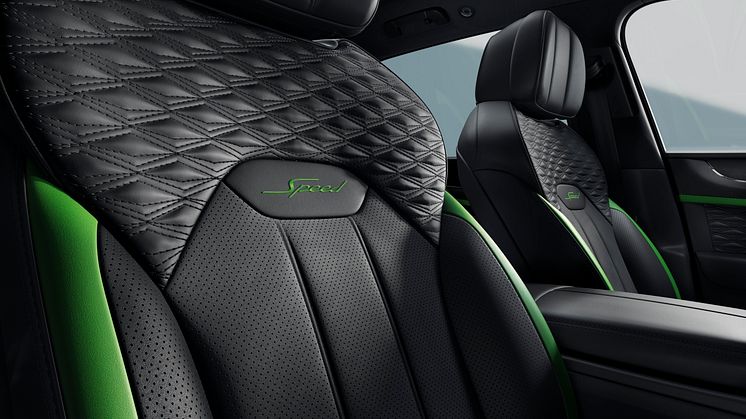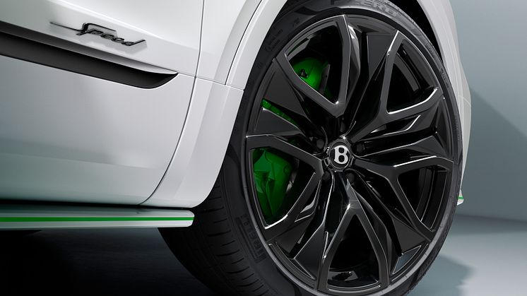Også visuelt skiller den nye Speed sig ud fra de øvrige Bentayga-modeller på sportslig manér – blandt andet med mørktonede detaljer, krombelagte Speed-emblemer og 22-tommers Speed-fælge i enten sølvfarvet eller mørk finish. Vælges kulfiberkeramiske bremser, kan Bentayga Speed også leveres med 23-tommers Speed-fælge – de største hjul, som Bentley Motors nogensinde nogensinde har fremstillet.