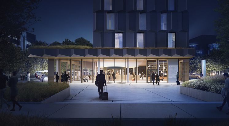 Det otte etager høje hotel får 176 værelser og vil kunne byde gæsterne indenfor i egen restaurant, bar, lounge, fitness og sauna. Det bliver et moderne og bæredygtigt firestjernet hotel, som tilbyder hotelværelser med eget tekøkken, hvor der er lagt vægt på design og smarte digitale løsninger. Ambitionen er at skabe et attraktivt mødested med en indbydende lounge og restaurant/bar. Hotellets spændende udbud af mad og drikke vil blive håndteret af Aveqiagruppen med David Berggren.