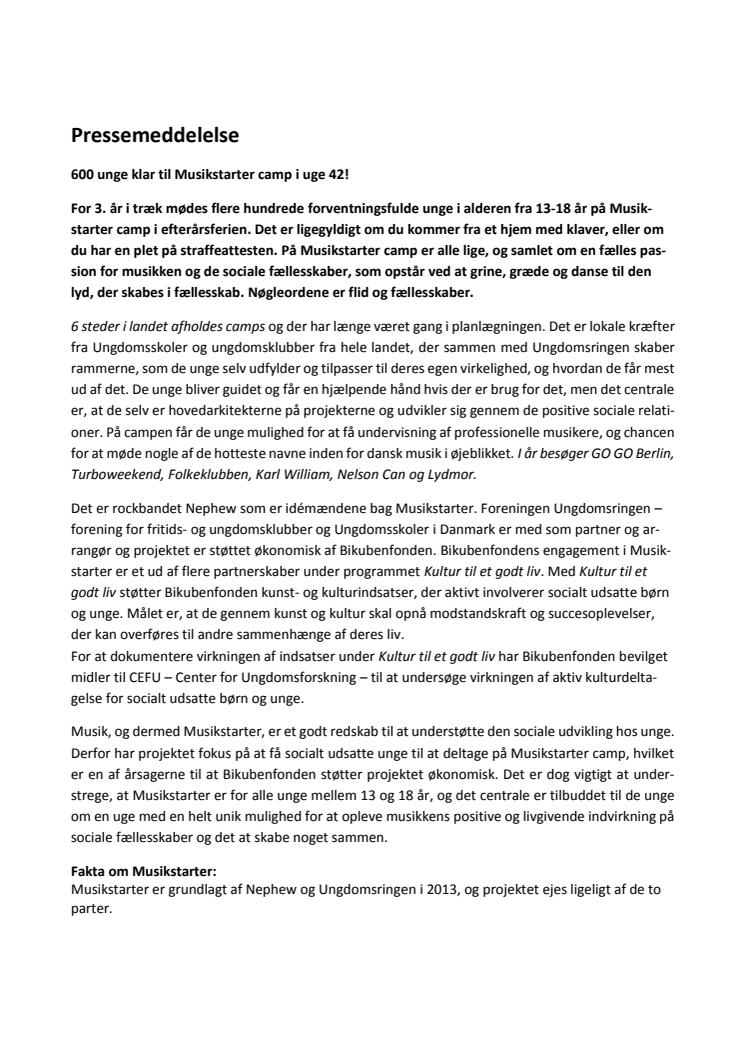 For 3. år i træk mødes flere hundrede forventningsfulde unge i alderen fra 13-18 år på Musikstarter camp i efterårsferien. Det er ligegyldigt om du kommer fra et hjem med klaver, eller om du har en plet på straffeattesten. På Musikstarter camp er alle lige, og samlet om en fælles passion for musikken.