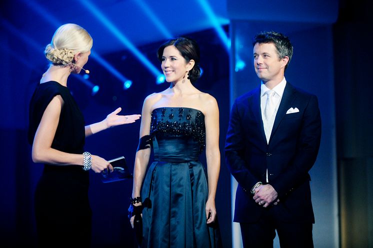 H.K.H. Kronprins Frederik og H.K.H. Kronprinsesse Mary ved Kronprinsparrets Priser 2012 i Alsion Sønderborg samt vært Louise Wolff.
