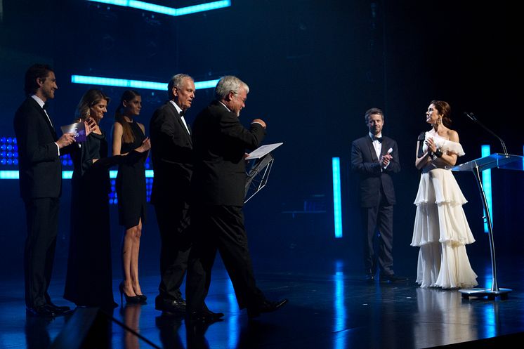 Formand Stig Kjerulf fra Fonden for Socialt Ansvar og sekretariatschef og stifter af Natteravnene Erik Thorsted modtog prisen på vegne af Natteravnene