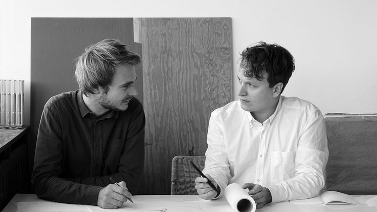 Tegnestuen Johansen Skovsted Arkitekter modtager Kronprinsparrets Stjernedryspris 2016. Til venstre Sebastian Skovsted, til højre Søren Johansen.